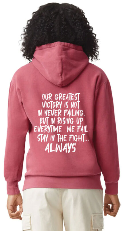 This design represents the inspiration we gather from many people in our lives that refuse to give up or give in. Life is always testing us. Daily we all face challenges big and small that require strength, determination & courage. Show up and be ready. Stay in the fight!