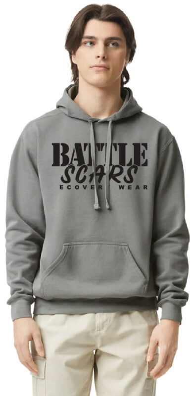 All Battle Scar Recovery Wear is screen printed in Minnesota at Rebyl. We would like to emphasize that our garments are manufactured with the highest quality screen printing which gives a better quality, washability, and longevity. (We DO NOT USE TRANSFERS or DTG)