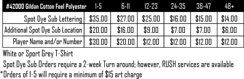 Cut & Sew Dye Sub Pricing