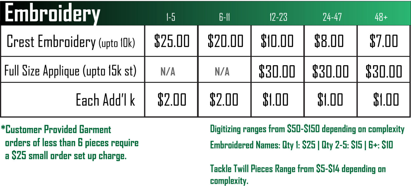 Order Embroidered Caps Here Order Embroidered Hoodies Here Embroidery PricingTackle Twill 101